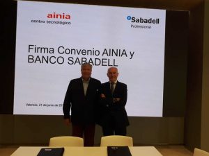 AINIA ha firmado un convenio de colaboración con el Banco Sabadell que, aunque en un principio está centrado en el apoyo mutuo en el desarrollo de jornadas y eventos, la intención es ampliarlo a diferentes líneas de actividad y proyectos.