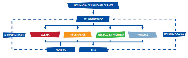 El sistema RASFF está formado por puntos de contacto en todos los países de la UE, que intercambian información sobre cualquier riesgo para la salud. Existe un servicio permanente para garantizar el envío, la recepción y la respuesta de las notificaciones urgentes en el tiempo más breve posible.