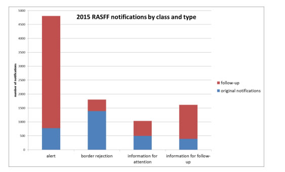 Además, el elevado número de notificaciones de seguimiento de alertas pone de manifiesto como los esfuerzos del RASFF se están centrando cada vez más en los casos que potencialmente pueden suponer graves riesgos para la salud y requieren, por lo tanto, de una actuación rápida y colaborativa, lo que aumenta la eficacia de la red.