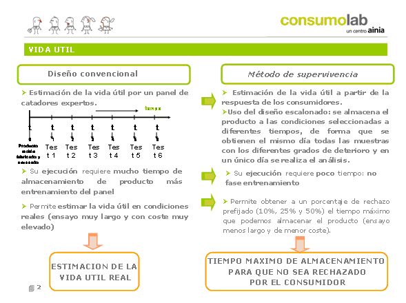 Tradicionalmente la estimación de la vida útil sensorial se ha hecho a partir de controles con paneles de catadores entrenados, pero esta información no tienen por que coincidir con la opinión del consumidor. Los paneles sensoriales entrenados son herramientas que consumen muchos recursos económicos y sobre todo mucho tiempo en su entrenamiento. Por todas estas razones a veces resulta más sencillo utilizar a los consumidores directamente, con métodos que permiten a los fabricantes estimar el momento de la vida útil del alimento a partir del cual su producto podría se rechazado por el consumidor.
