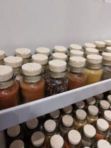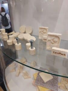 - “cornpack” una alternativa al corcho fabricada con los residuos de la producción de sémola de maíz, principalmente. Es un material de embalaje natural que es completamente compostable, se puede depositar en el contenedor de basura orgánica.